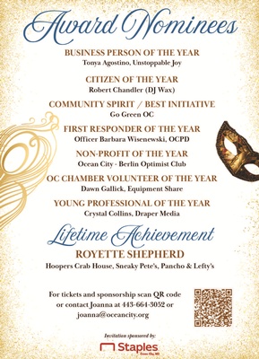 Please join us to celebrate our 2026 OC Chamber award winners at Ashore Oceanfront Hotel in the Atlantic Ballroom. This year our theme is “Masquerade”.