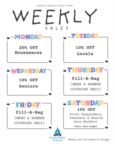 Coastal Hospice Thrift Shop Weekly Sales