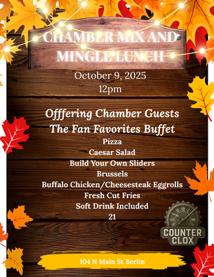 Our Mid-Day Mingle brings together 25–30 local business professionals for a casual, one-hour lunch at CounterClox. It’s the perfect way to expand your network, connect with fellow Chamber members, and introduce your business to new faces—all while enjoying great food (and maybe a new favorite lunch spot!)